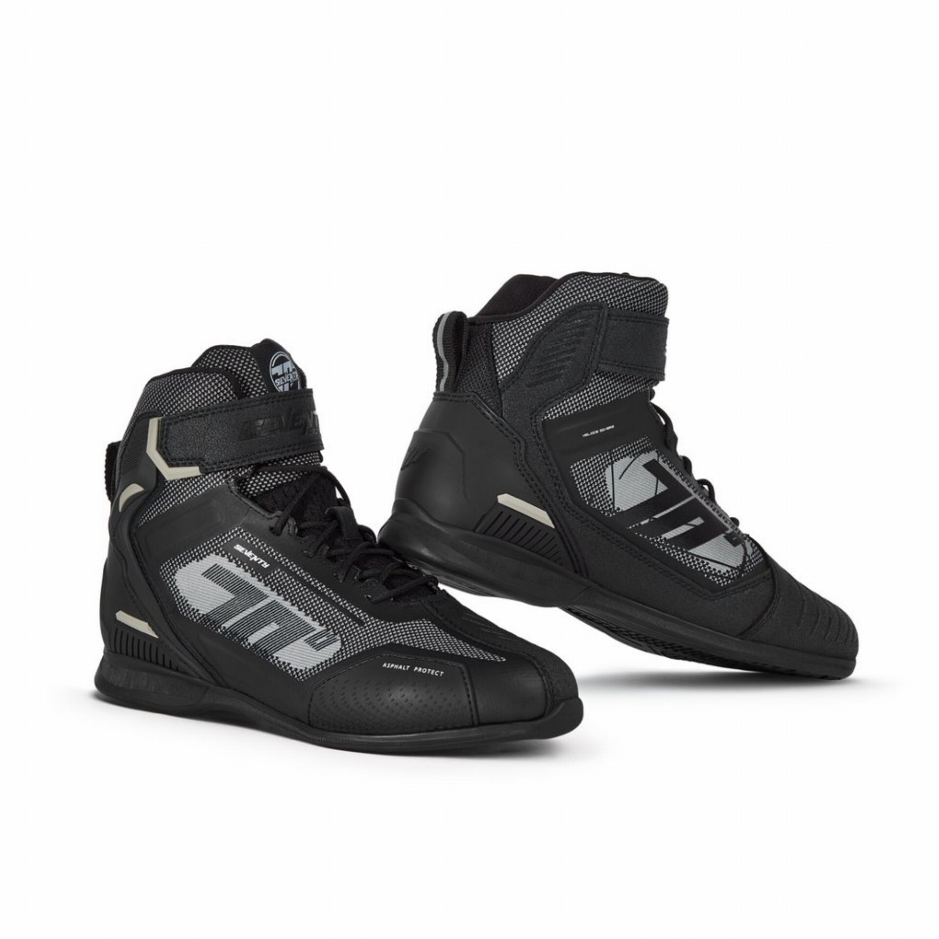 Die Motorradstiefel Seventy SB-BR2 Veloce sind ideal sowohl für Geschwindigkeitsliebhaber als auch für diejenigen, die mit dem Roller durch die Stadt fahren. Mit einem grau-schwarzen Design vereinen diese Unisex-Stiefel Stil und Sicherheit in einem Produkt. Sie bestehen aus belüftetem Textil und bieten jederzeit Komfort.