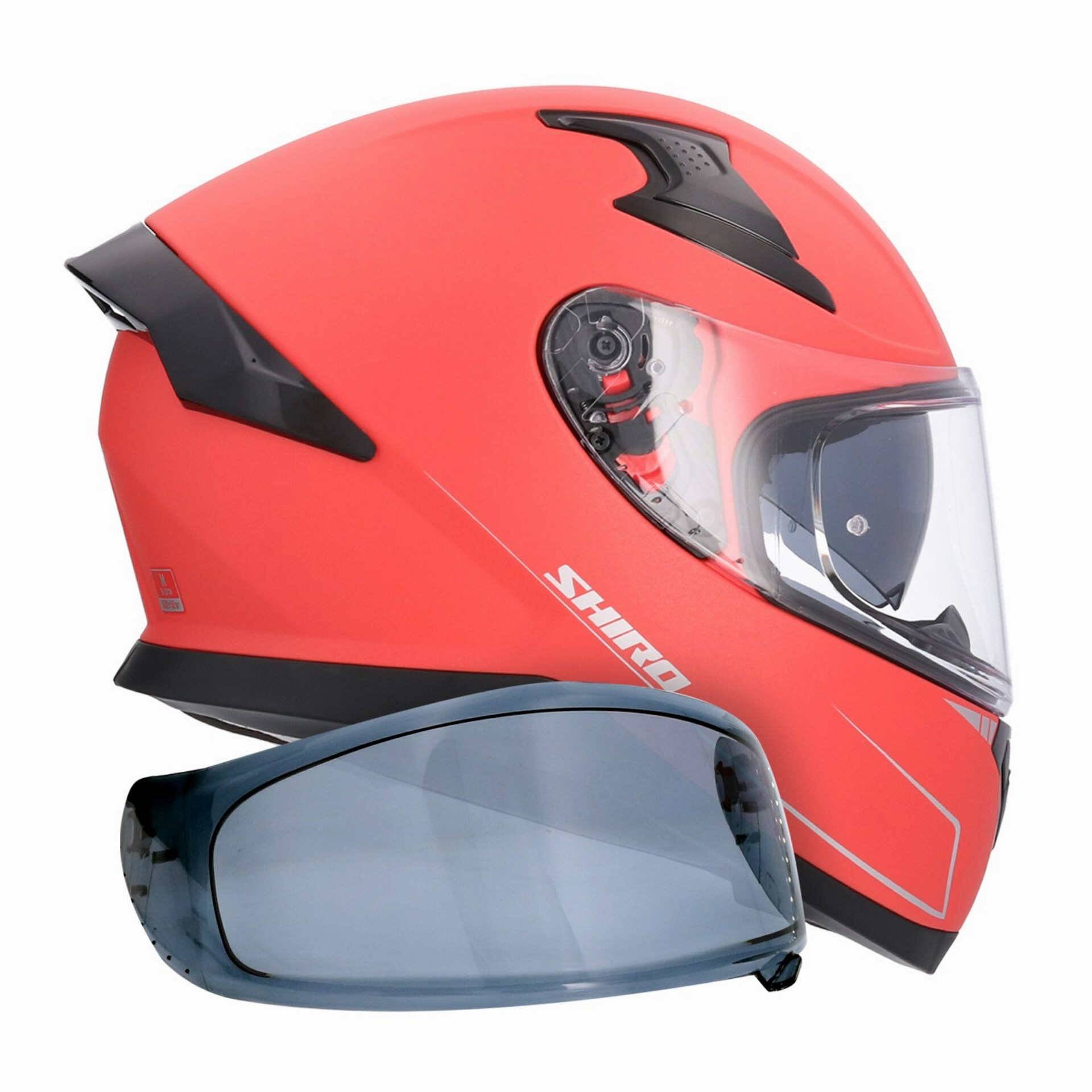 Der Integralhelm Shiro Katana ist perfekt für Männer, die Stil und Sicherheit suchen. Dieser Helm im roten Design verfügt über einen Schnellverschluss. Darüber hinaus ist eine Solarbrille enthalten und entspricht den Sicherheitsstandards ECE 22-06. Unisex und hochwertig!