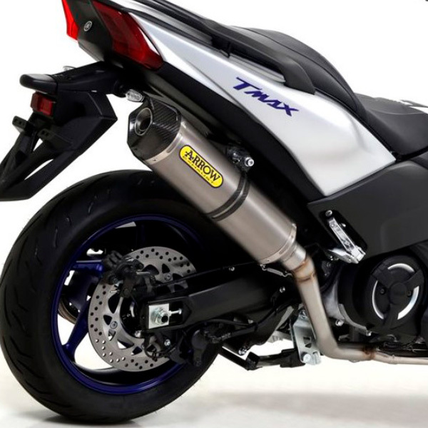 Arrow Race Tech Homologierter leiser Auspuff aus Titan und Carbonboden für Motorrad Yamaha T-Max 530 von 2017 bis 2019. Ref. 73514PK