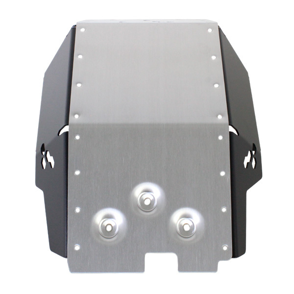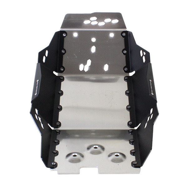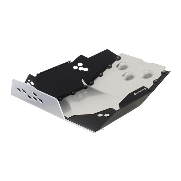 Motech SW Fahrschutz für KTM Abenteuerbereich besteht aus Aluminium 4 milimentros in Schwarz und Silber.