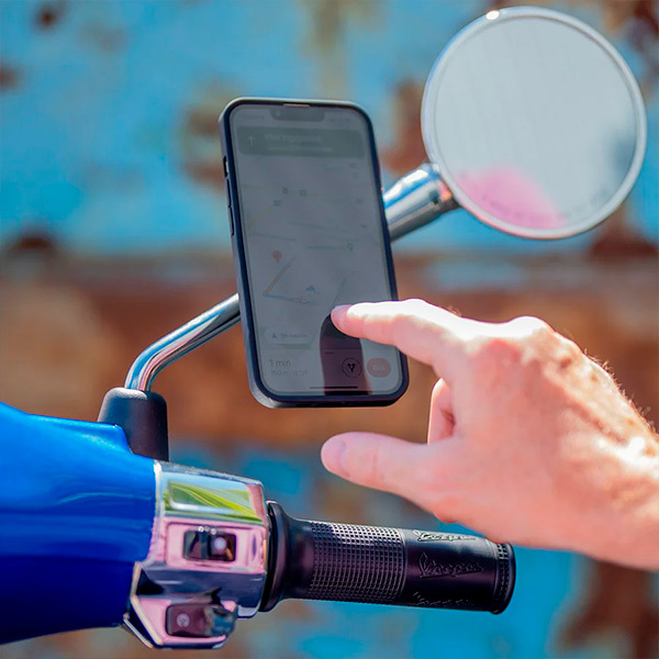 Motorrad-Smartphone-Halterung für die spezifische Verwendung am Lenker, um eine stabile Fixierung von Handy und GPS zu haben. Sie können es auf jeder Art von Motorrad verwenden: Vespa, Roller, Mopeds und Motorräder. Es hat eine superstabile 360º-Verstellung in 6-Grad-Schritten. Flexibel und intuitiv, reparieren Sie Ihr Telefon in einer einzigen Sekunde.