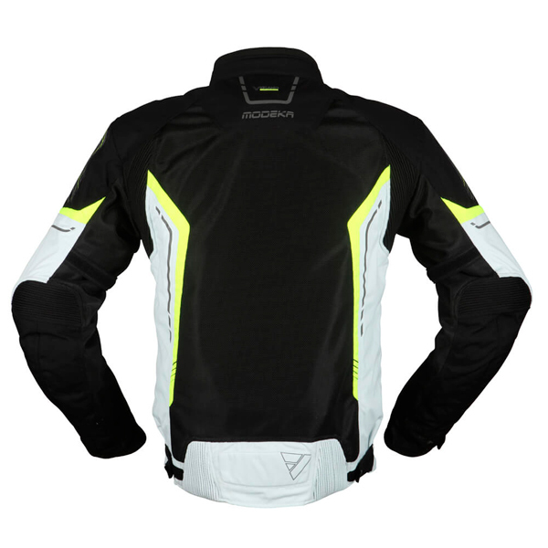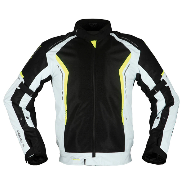 Das hochwertigste Motorradkleidungsstück aus 450D Polyamid. Es enthält große AirFlow-Mesh-Einsätze für außergewöhnliche Belüftung, die für das Fahren in sehr heißen Umgebungen geeignet sind.