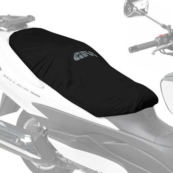 Wasserdichte Motorrad-Sitzbezug von Givi, mit elastischem Rand für eine ideale Anpassung an den Motorradsessel sowie verstellbaren Riemen zur perfekten Anpassung der meisten Motorrollersitze auf dem Markt