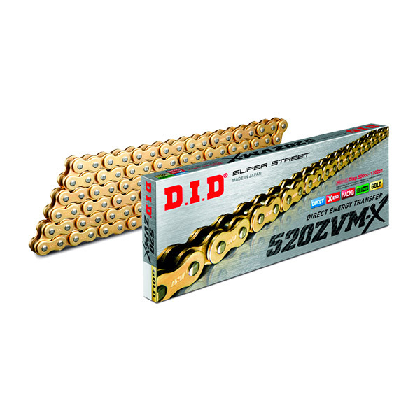 Die Ketten der Serie DID 520ZVM-X wurden entwickelt, um als universelle Kettenlösung für Straßen- und Offroad-Motorräder bis 1200 ccm einen Unterschied auf Ihrem Motorrad zu machen.