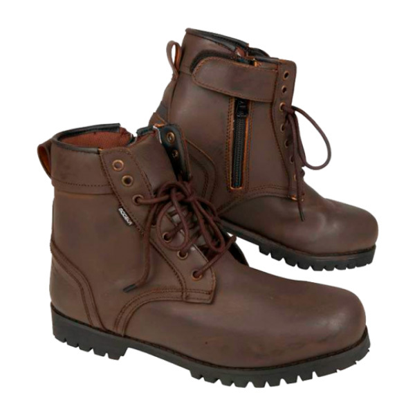 Modeka Lynton Motorradstiefel aus hochwertigem Rindsleder. Mit atmungsaktiver, winddichter Hipora® Waterproof-Membrane und Klettverstellsystem sowie seitlichem Reißverschluss.