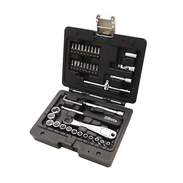Beta- Aktentasche mit einer Auswahl an Ratschenschlüsseln und zahlreichen Gläsern, die Sie zweifellos aus mehr als einer Eile herausholen werden. Das Wesentliche in jeder Motorradwerkstatt und Garage.