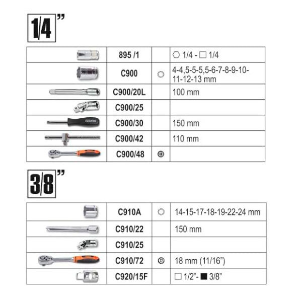 - C900: 4-4,5-5-5,5-6-7-8-9-10-11-12-13 mm