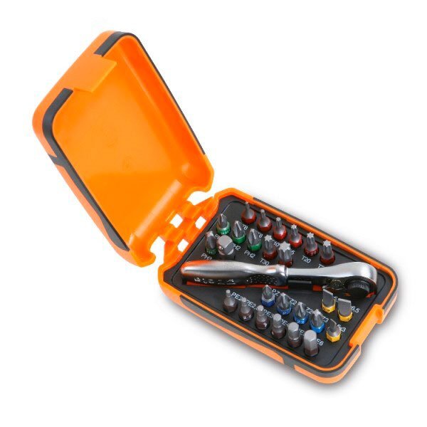 Sortiment von 25 Schraubenspitzen mit Umschaltknarre Beta 860 / C27 , dieser Bausatz bietet die Möglichkeit der Verwendung von Gläsern