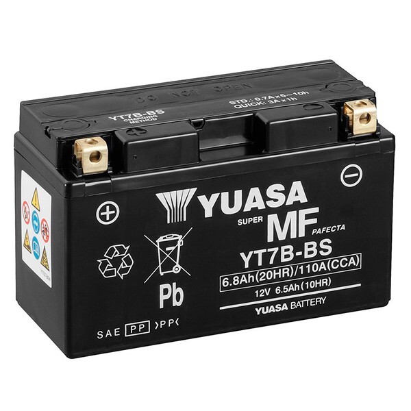 Moto-Batterie YT7B-BS. Wartungsfreie VRLA-Batterien (Valve Regulated Lead Acid) sind luftdicht und müssen nicht nachgefüllt werden