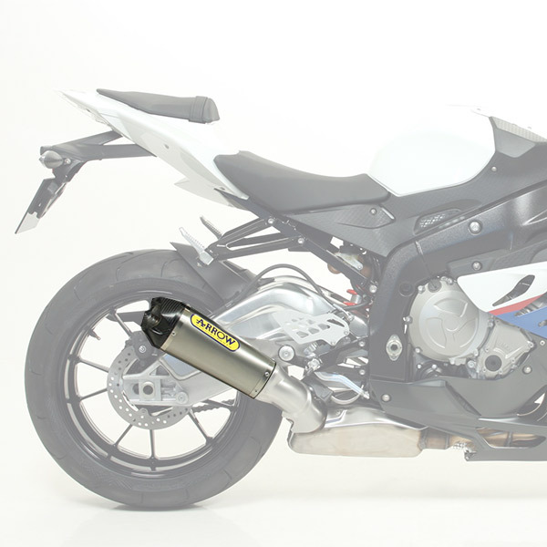 Arrow Works leiser Auspuff für BMW S1000RR von 2009 bis 2011, er ist innen aus Edelstahl gefertigt und mit WIG-Technologie geschweißt, optimiert für den turbulenzfreien Gasaustritt.